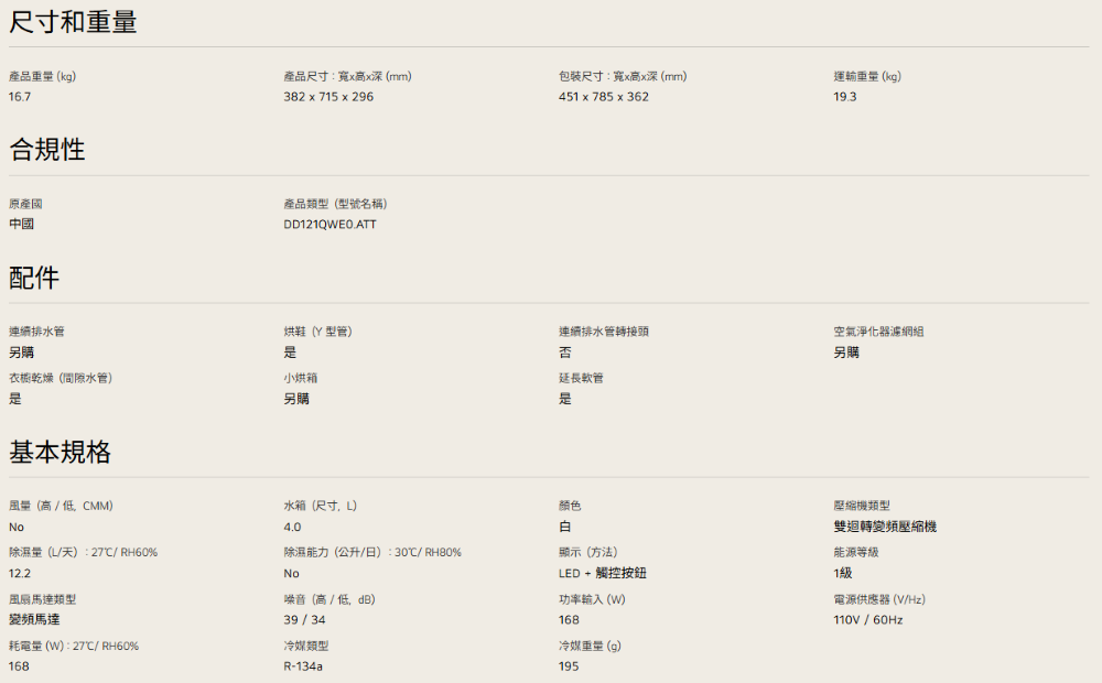 30項安全裝置 | WiFi遠控功能 | 12公升/日除濕量