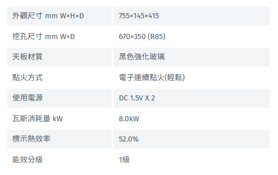 ◆瓦斯消耗量:8.0kW