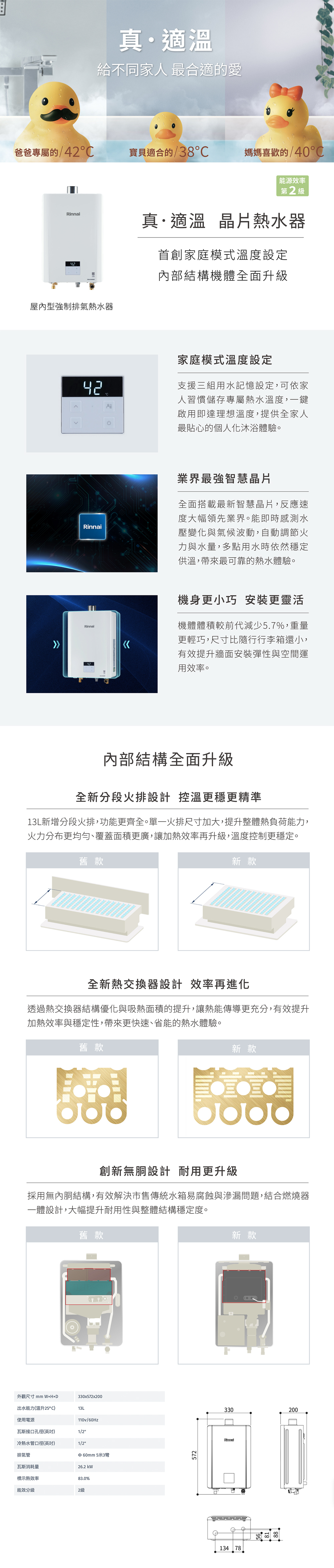 【結帳現折】Rinnai林內 13L 智慧控溫系列 屋內型 強制排氣熱水器 RUA-D1300WF
