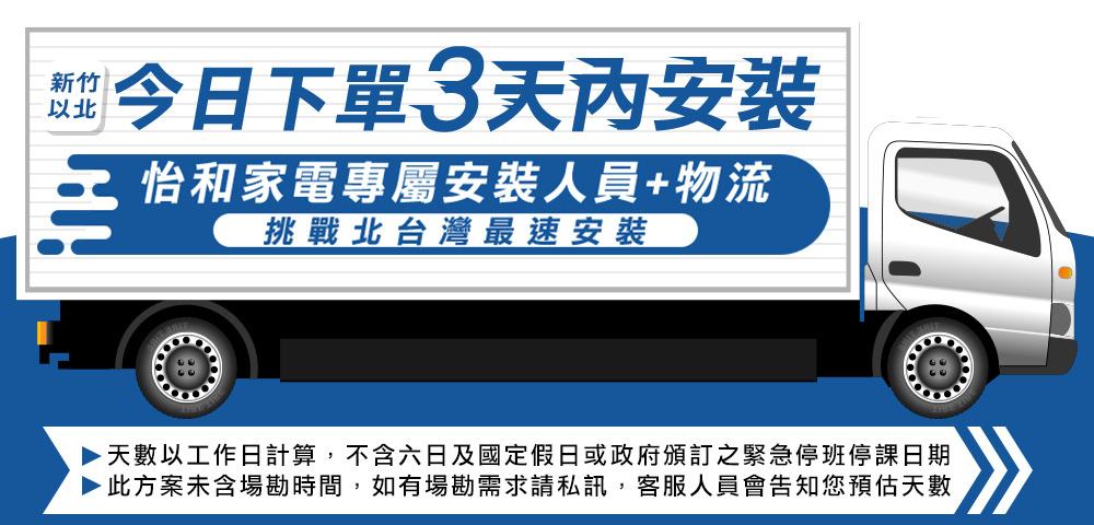 | 怡和家電自有工班 新竹以北今天下單三個工作天內完成安裝 |