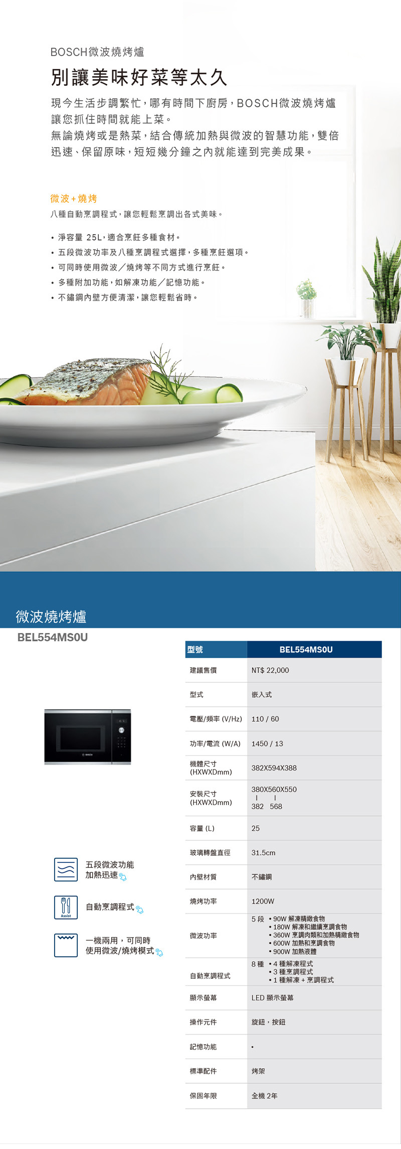 5種微波強度設定;微波最高功率:900W