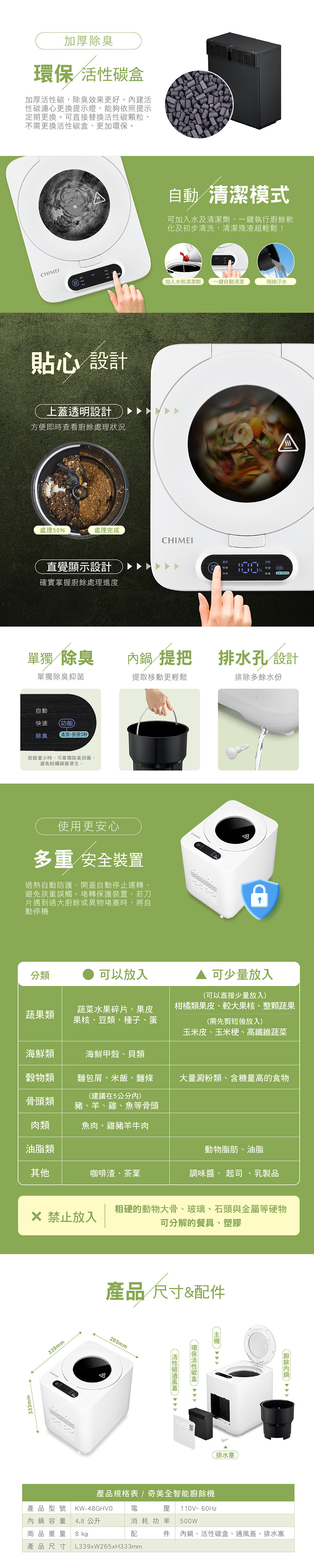 最多可丟4.8L廚餘量,減少90%以上的廚餘