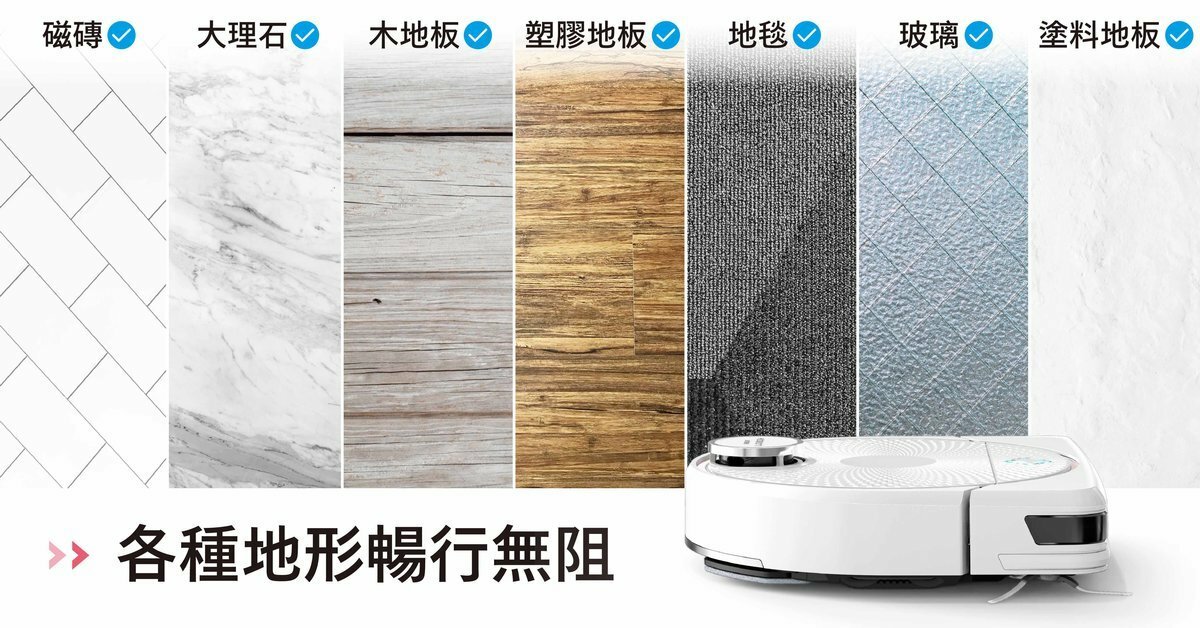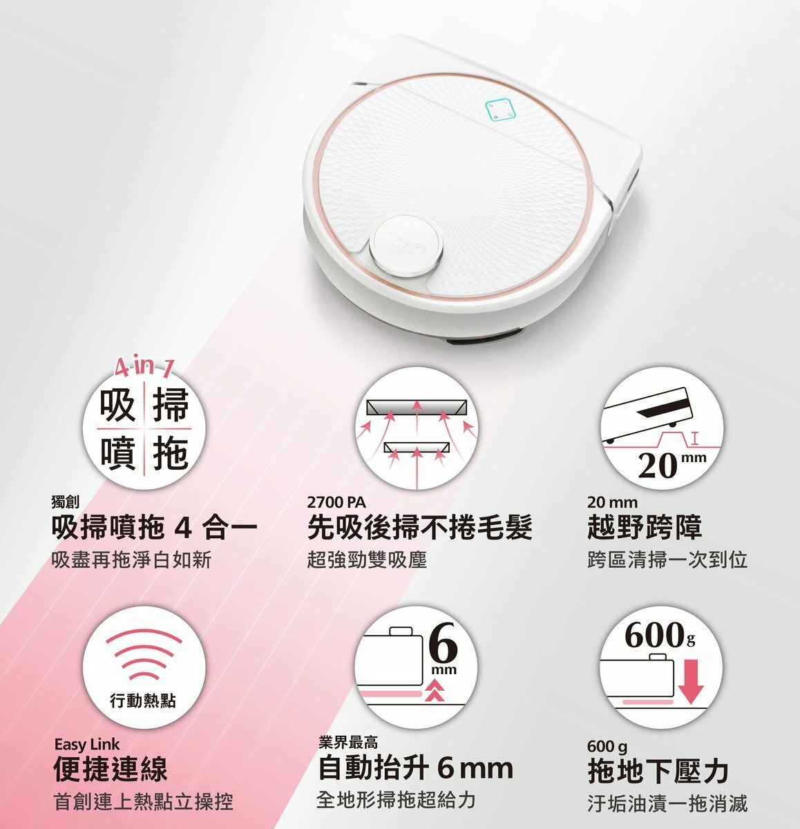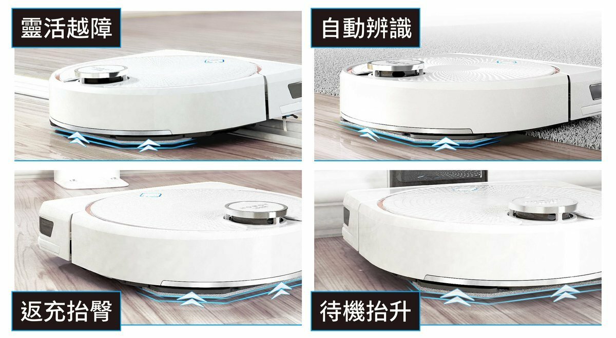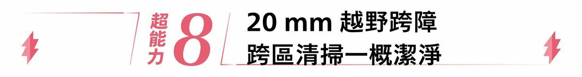 ◆20mm 越障跨區清掃、業界最高6mm智慧升降拖布