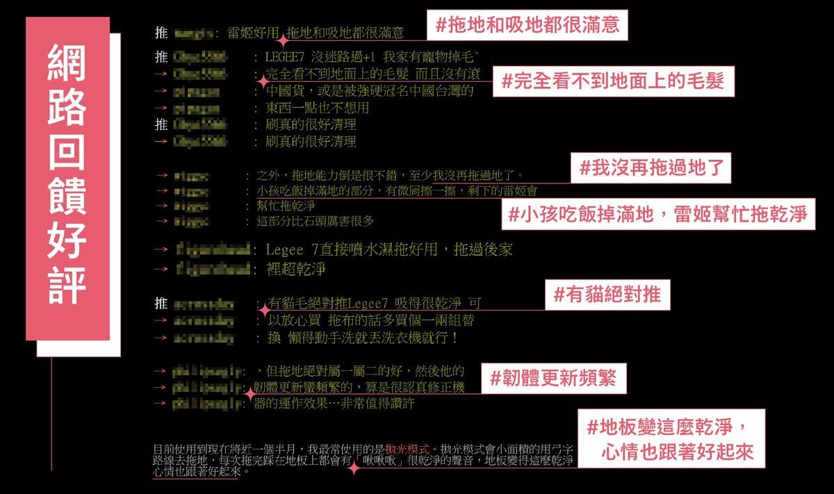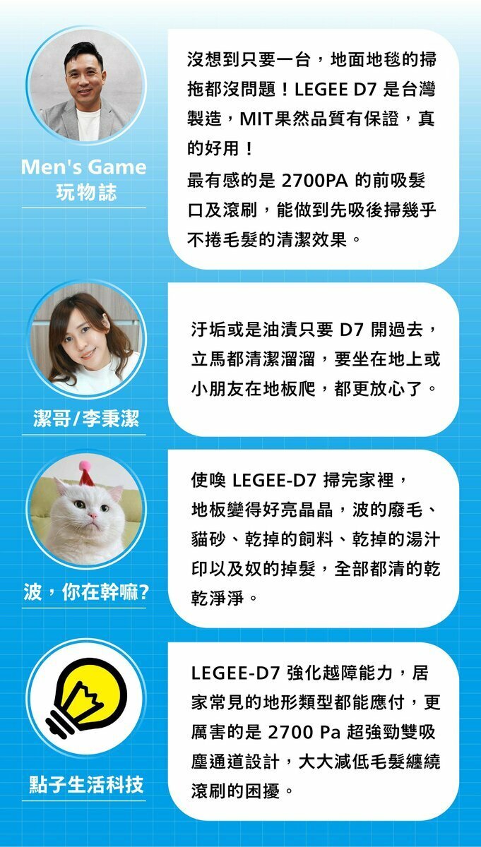 PTT 鄉民一致讚爆雷姬拖地清潔力,表示每天回家就可直接脫襪赤腳,踩在地上發出『啾啾啾』的療癒音效,亮晶無暇踩起來特別爽! LEGEE-D7 承襲拖地神力,不只空有蠻力而是高效巧勁,持續以 600g 下壓力拖地,污垢油漬一併帶走除盡,可用腳掌認證的舒服乾淨。