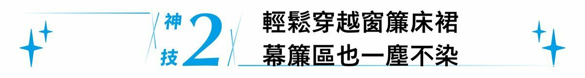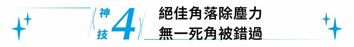 足夠長度的 4 公分長邊刷,輕鬆深入牆邊角縫、櫃子底部,擠進窄小縫隙把灰塵全掃出。