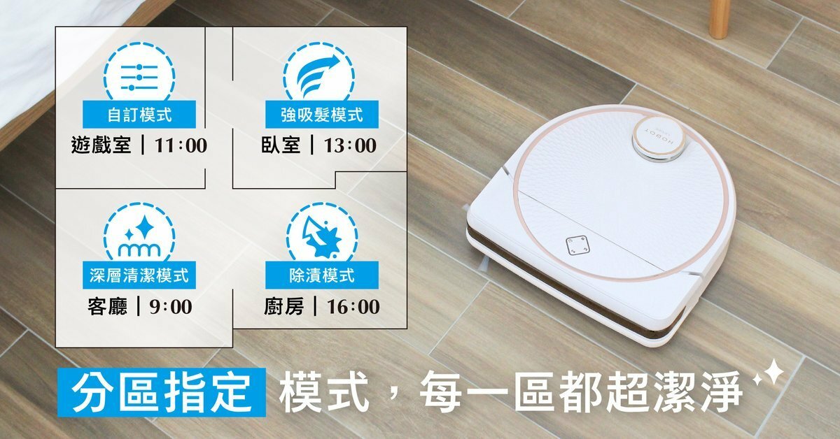 毛寵房間,要加強毛髮掃拖與地板口水;餐桌下有小朋友亂噴的副食品、髒腳印;木地板不可以過濕,能不能一鍵操控、一機掃拖就乾淨?Talent Clean 達人清潔預設 8 種清潔模式,搭配智能地圖分區,可任意指定各區清潔模式,全家不同清潔需求一次解決!