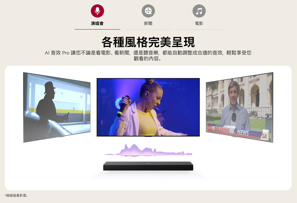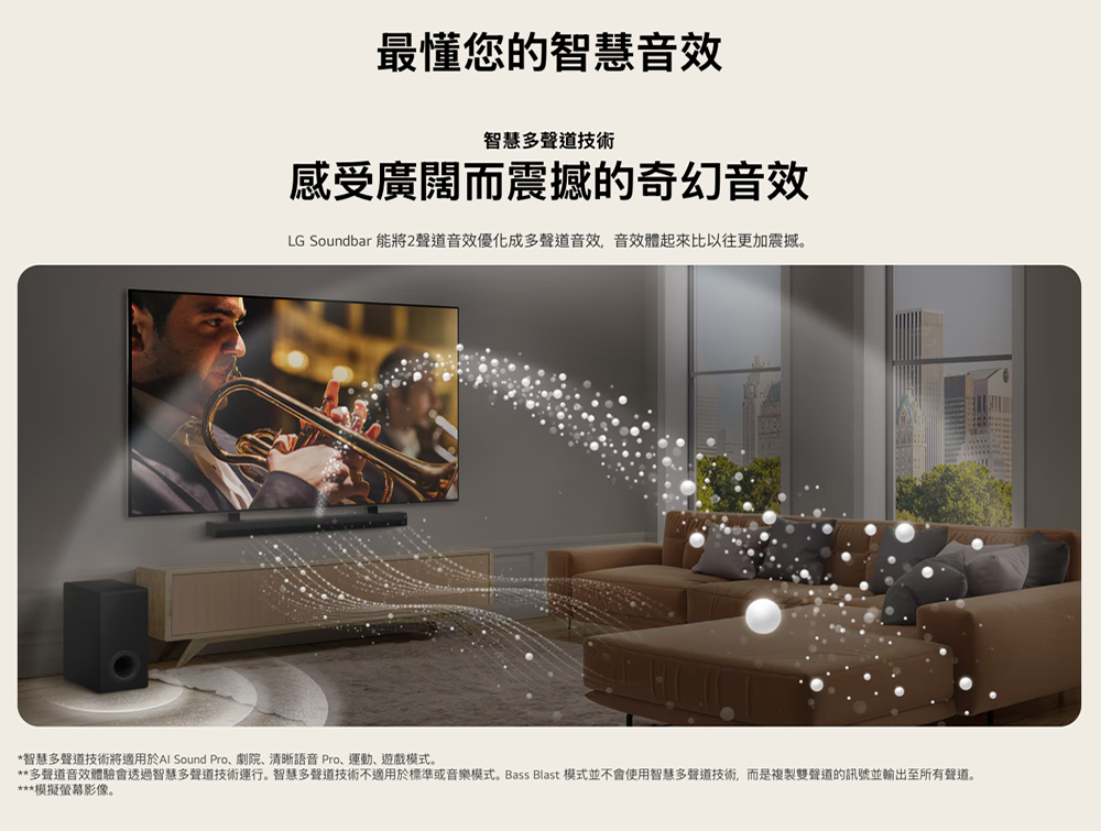 中央天空聲道彷彿來自 LG 智慧顯示器畫面的正中心