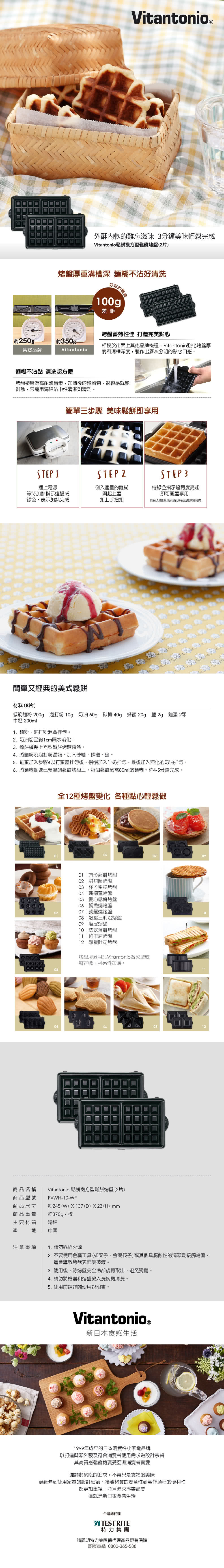 ⬥產品:Vitantonio 鬆餅機方型鬆餅烤盤 PVWH-10-WF