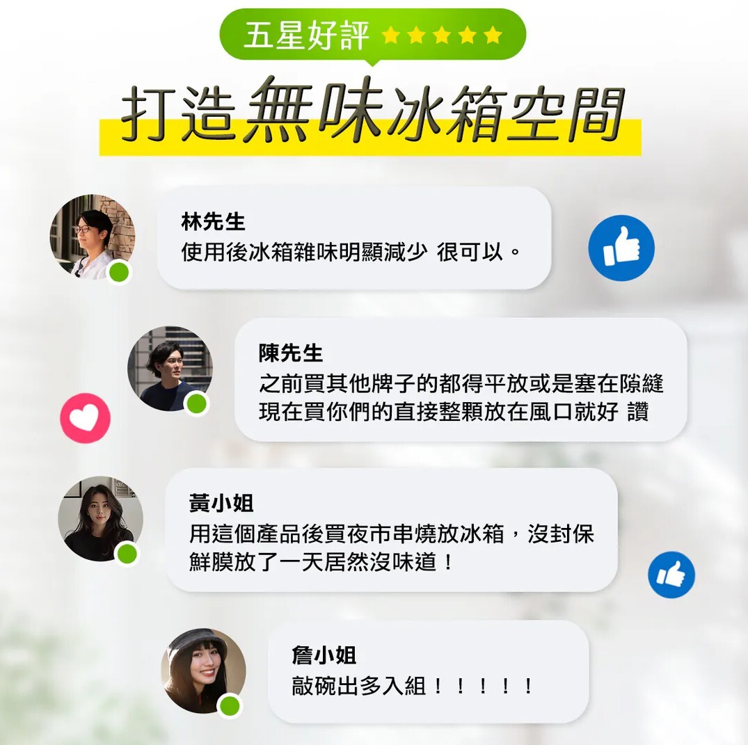 ➤ 天然活性碳去除異味、降低濕氣、加強保鮮