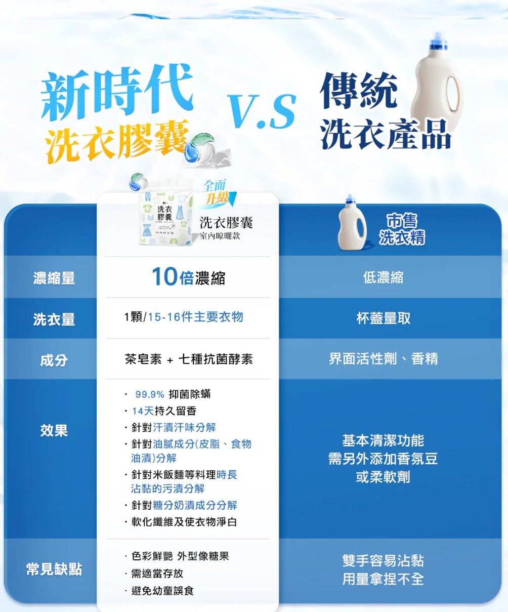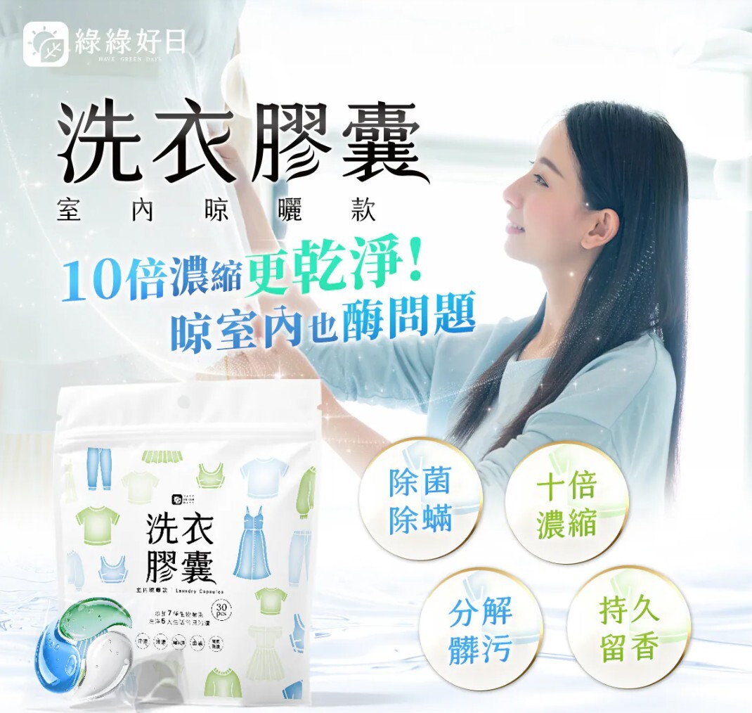 衣服污漬洗不乾淨?潮濕室內晾衣好臭?綠綠好日的洗衣膠囊可以解決!