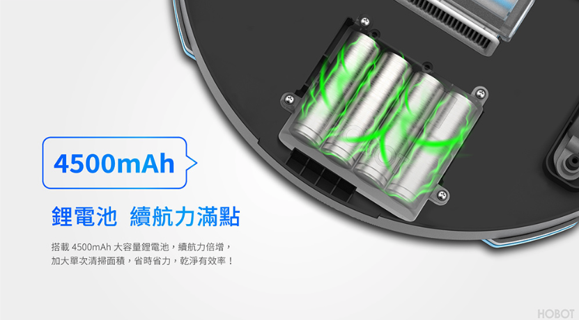 LEGEE7 在充滿電的情況下可連續清掃140分鐘。雷姬7 的電池容量升級加大到 4500mAh,比起 上一代 Legee 688 的 2750mAh 要來得更加持久。