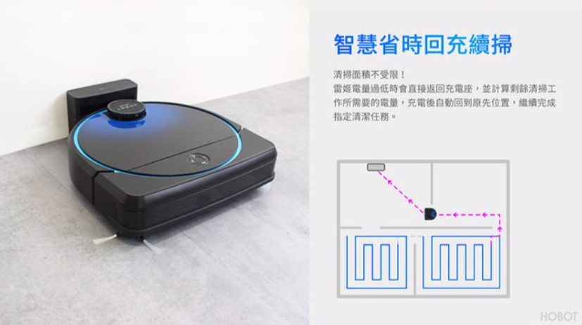 各位客官不用擔心,Legee 7具備自動回充及續掃功能,快沒電的時候,L7就會自動回家充電,充飽以後再回到他停止工作的地方繼續開工~完全不用擔心機器人跟老公一樣家事做一半就跑喔🤣