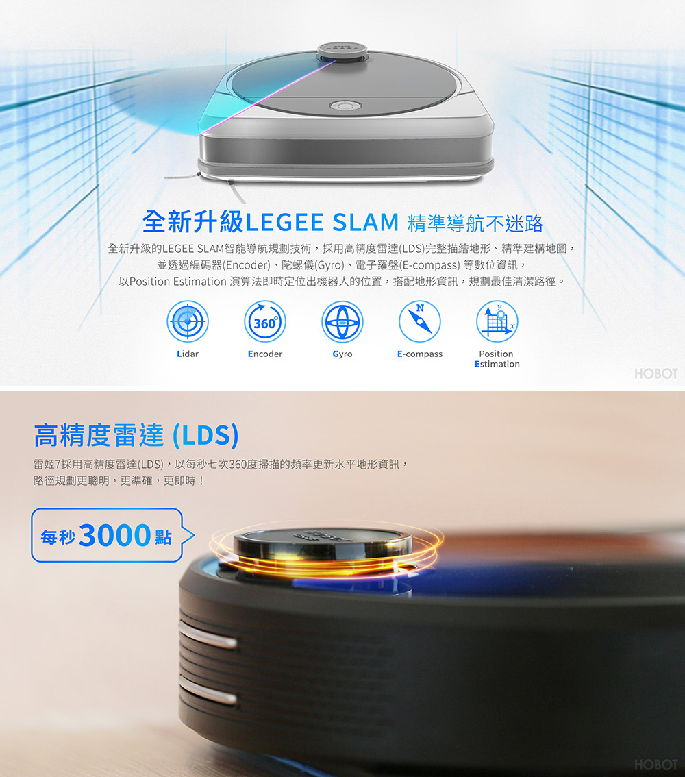 Legee 7搭載了全新的legee slam智能導航規劃技術,採用高精度雷達完整描繪地形,精準建構地圖。不用擔心跟他牌機器人一樣,回家以後發現地沒掃成,還卡在什麼莫名其妙的地方等著你救援他 😵