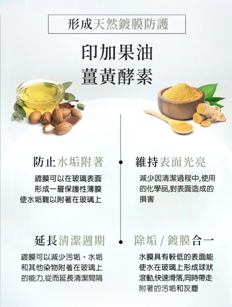✓ 添加天然鍍膜成分,有效延長清潔時間